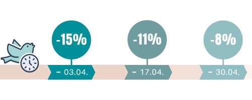 Réduction Early Bird : il vaut la peine de se dépêcher, la réduction* diminue !