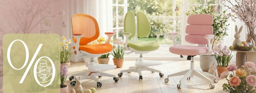 Offrez à votre enfant un plus en matière d'ergonomie ! Nous avons caché des œufs de Pâques dans notre boutique, sur certaines chaises de bureau.